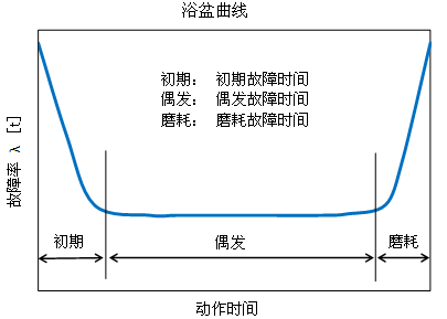装置和电子元件的故障率的变化用浴盆曲线表示。